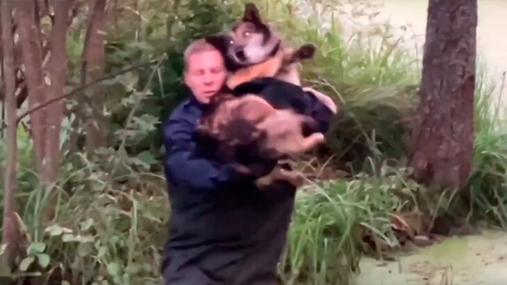 Спасатели освободили окруженную болотом собаку в Талдомском округе